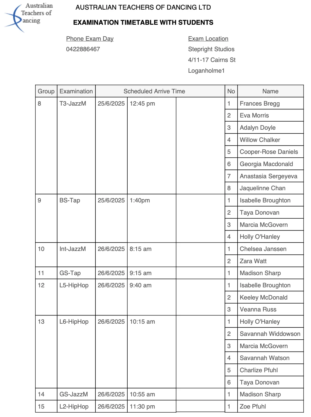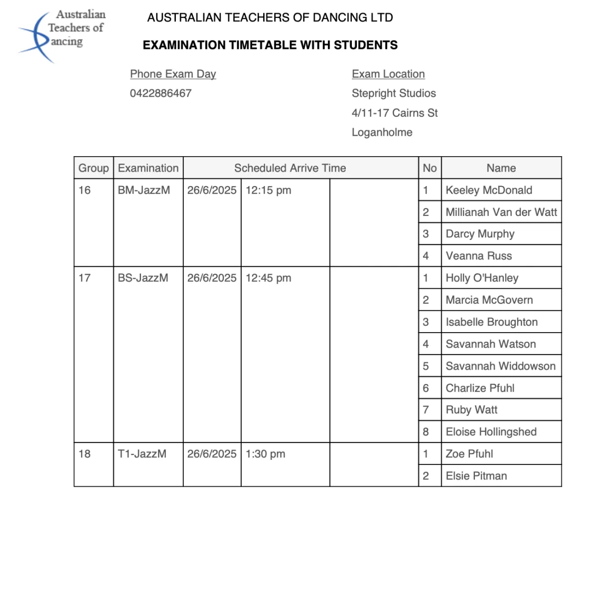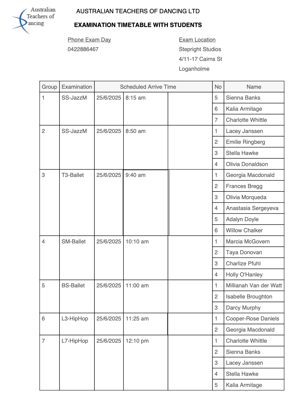 Please ensure that you arrive (at a mimimum) by the requested Arrive Time with Hair done as required ready to warm up